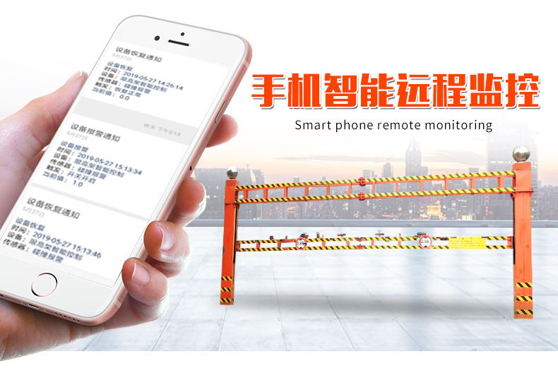 • 防尾隨砸車功能:超高車輛通行時,限高架感知車輛未通行完畢, 一直在設定高度,通行完 畢后自動下降到初始限 高位置。防止車輛通行時砸車 ;